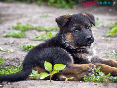 Puzzle Owczarek, Słodki, Szczeniaczek, Rośliny