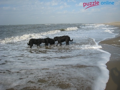 Puzzle Owczarki francuskie Briard, Trzy, czarne, fale