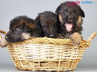Owczarki, Kosz, Trzy, Szczeniaczki, Niemieckie