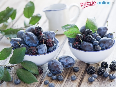 Puzzle Owocami, Miseczki, Z, Liście