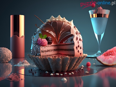Ciasto, Owoce, Czekoladowe, Grafika, Kieliszek