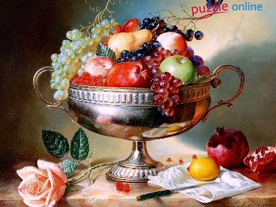 Puzzle Owoce, Srebrna, Patera, Grafika