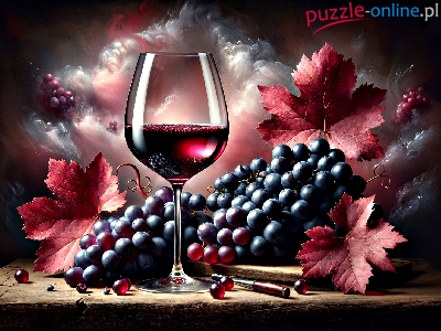 Liście, Wino, Kieliszek, Owoce, Grafika, Winogrona