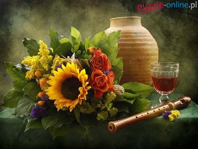 Puzzle Ozdobny, Kwiaty, Słonecznik, Flet