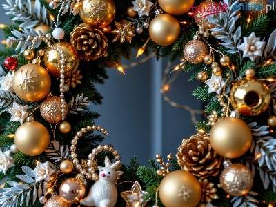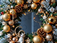 Ozdoby, Boże Narodzenie, Szyszki, Grafika AI, Bombki, Wianek, Dekoracja