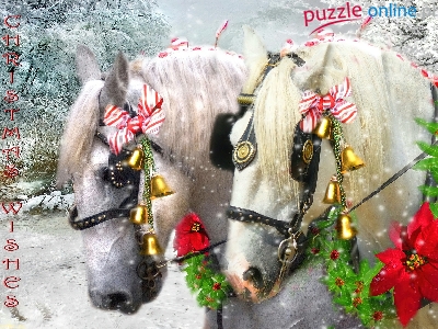 Puzzle Ozdoby, Dwa, Konie, Święta