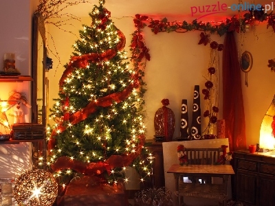 Puzzle Ozdoby, Choinka, Lampki, Świąteczne