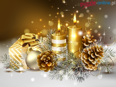 Ozdoby, Złote, Bombki, Choinkowe Świece, Dekoracja, Świąteczna, Prezenty Oświetlona, Zima, Choinka Świąteczna, Bombka, Żabka Zimowy, Krajobraz Na, Mikołaj, Wakacjach Boże Narodzenie, bałwanek Stroik, Świąteczny Święta Boże, Dziecko, Czapeczka, Narodzenie Choinka, Lampki Bombki, Świerku, Święta, Prezent, Gałązka Fatima, Szopka, Portugalia Śnieżynki, Choinka, Gwiazdki