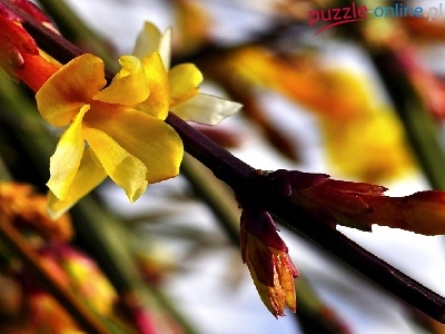 Puzzle Pączki, Żółty, Kwiat, Gałązka