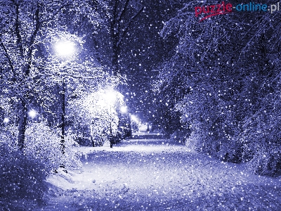 Puzzle Padający, Zima, Noc, Śnieg
