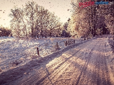 Śnieg, Słońca, Droga, Padający, Wschód