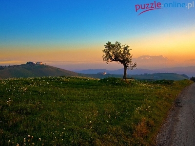 Puzzle Pagórki, Droga, Drzewo, Łąka