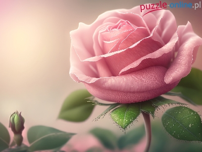 Róża, Pąk, Jasnoróżowa, AI, Liście