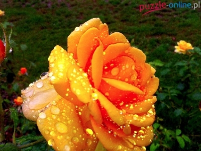 Pąk, Rosy, Róża, Pomarańczowa, Krople