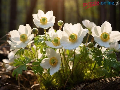 Puzzle Białe, Kwiaty, Zawilce, Pąki