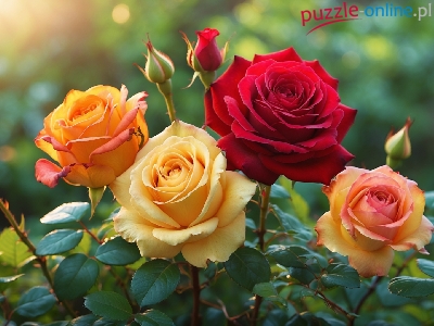 Kwiaty, Kolorowe, Róże, Pąki, Grafika, Cztery