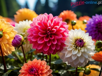Puzzle Dalie, Kwiaty, Kolorowe, Pąki