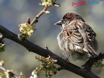 Puzzle Gałęzie, Ptak, Wróbel, Pąki