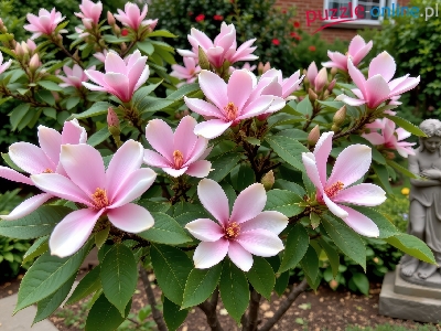 Puzzle Różowe, Krzew, Magnolie, Pąki