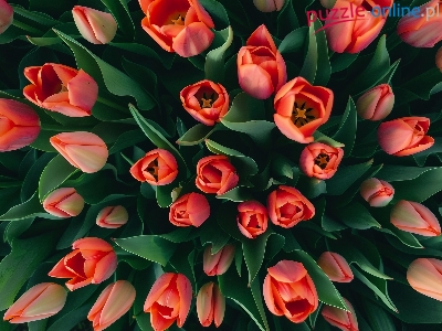 Puzzle Tulipany, Kwiaty, Czerwone, PÄ…ki