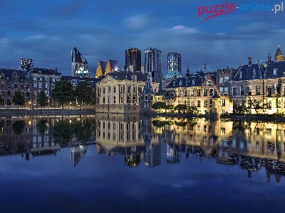 Haga, Pałac, Odbicie, Muzeum Mauritshuis, Holandia, Noc, Zabytek