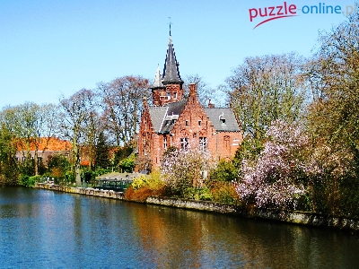 Pałacyk, Drzewa, Brugia, Kanał, Domy
