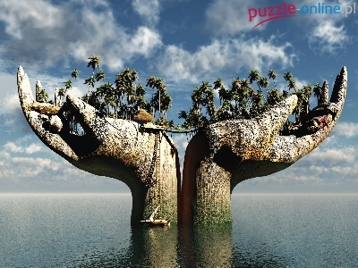 Puzzle Palmy, Kamienne, Dłonie, Wyspa