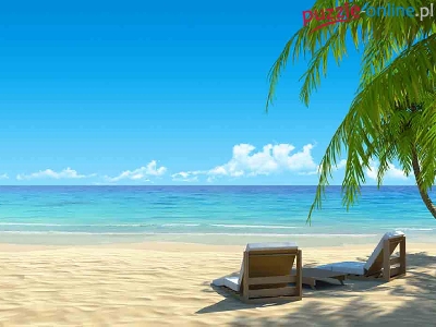 Morze, Leżaki, Wakacje, Plaża, Palmy, Tropiki