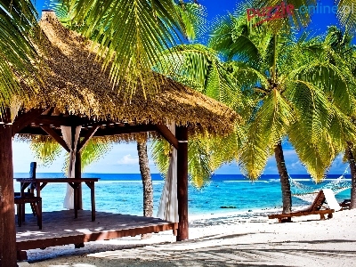 Palmy, Tropiki, Pawilon, Plaża, Ocean