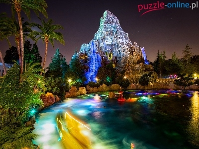 Palmy, Woda, Oświetlona, Skała, Kolorowa
