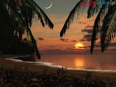 Puzzle Palmy, Zachód, Słońca, Księżyc