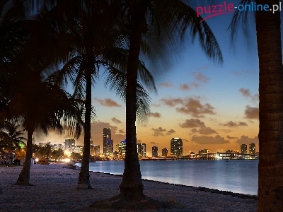 Palmy, Zmierzch, Plaża, Wybrzeże, Miasto