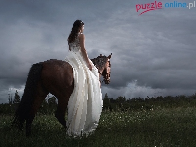 Biała, Panna młoda, Zdjęciowa, Koń, Kobieta, Suknia, Sesja