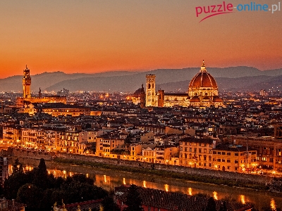 Panorama, Włochy, Katedra, Florencja, Miasta