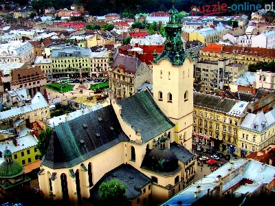Kościoły, Panorama, Ukraina, Lwów, Domy, Ulice, Miasta