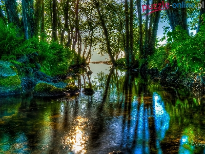 Puzzle Paprocie, Rzeka, Kamienie, Drzewa