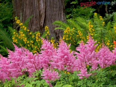 Puzzle Paprocie, Różowe, Kwiaty, Pień