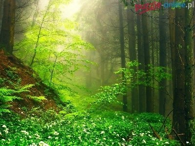 Las, Paprocie, Wiosna, Kwiatki, Mglisty, Ścieżka, Poranek