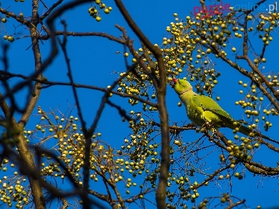 Drzewo, Papuga, Owoce, Ptak, Aleksandretta obrożna, Gałązki