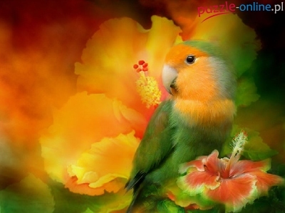 Puzzle Kwiaty, Papuga, Hibiskus