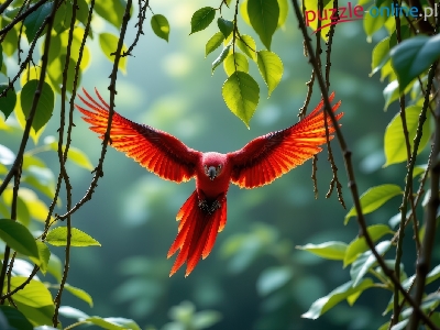 Liście, Czerwona, Ptak, Papuga, AI, Liany