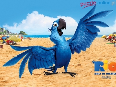 Puzzle Papuga, Rio, Niebieska, Plaża