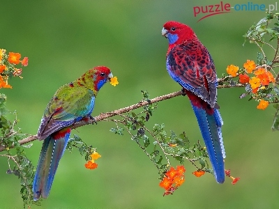 Papugi, Gałązka, Kwiaty, Rozella królewska