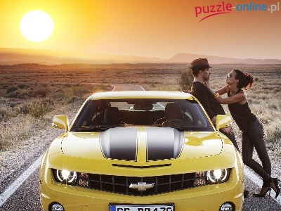 Para, Słońce, Żółty, Chevrolet Camaro, Droga
