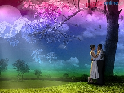 Puzzle Para, Łąka, Zakochana, Drzewo