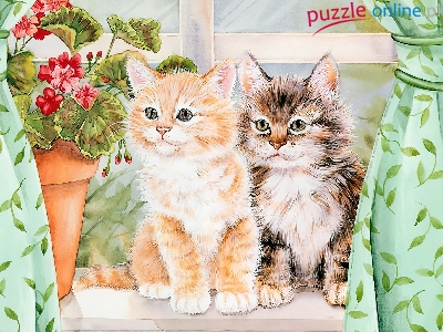Puzzle Parapecie, Kotki, Na, Firanki