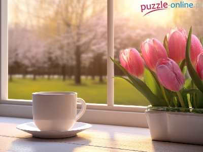 Puzzle Parapet, Tulipany, Filiżanka
