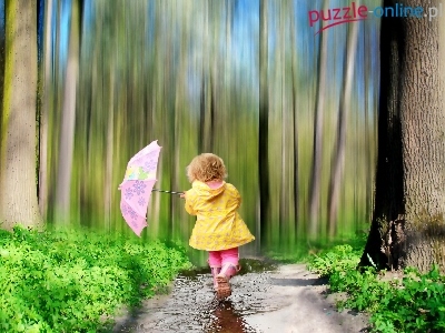 Puzzle Parasol, Dziecko, Drzewa, Trawa