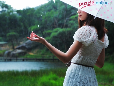 Puzzle Łąka, Dziewczyna, Parasol, Deszcz