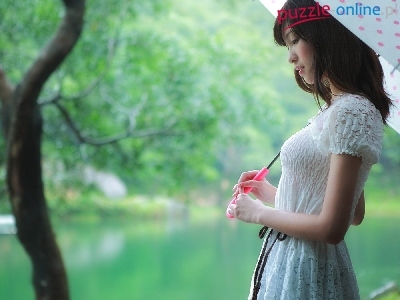 Parasol, Park, Zamyślona, Dziewczyna, Rzeka